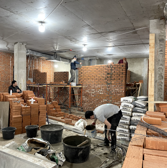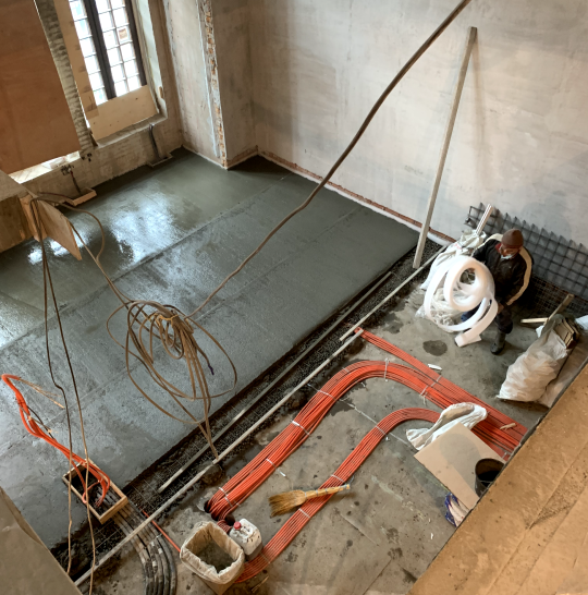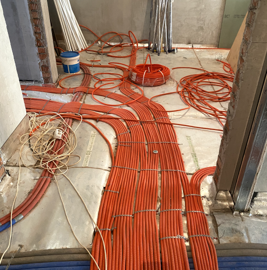 Примыкание инженерной доски и керамогранита через покрашенный латунный микро плинтус